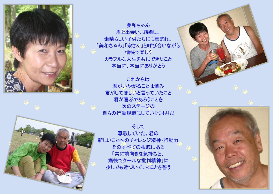 • 1980年 和歌山市成人学校洋画教室で出会った小生と結婚                     ABCDWEGHH3人の子供(女/男/女)を授かる