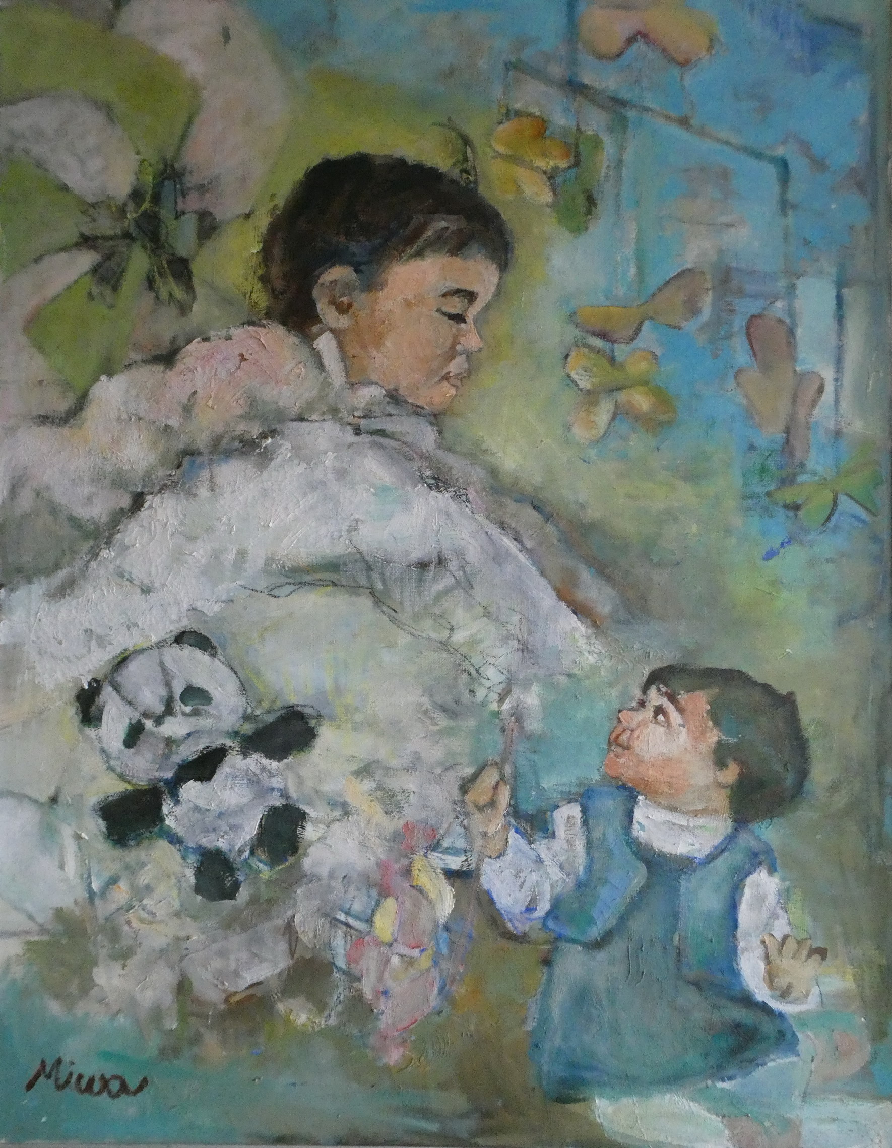 我が家では2番目に大きいキャンバス。1歳少しくらいの長女の愛らしい姿に突き動かされて久しぶりに筆をとった。荒っぽいが、描かずにはいられなかったのだろう。<1982年>