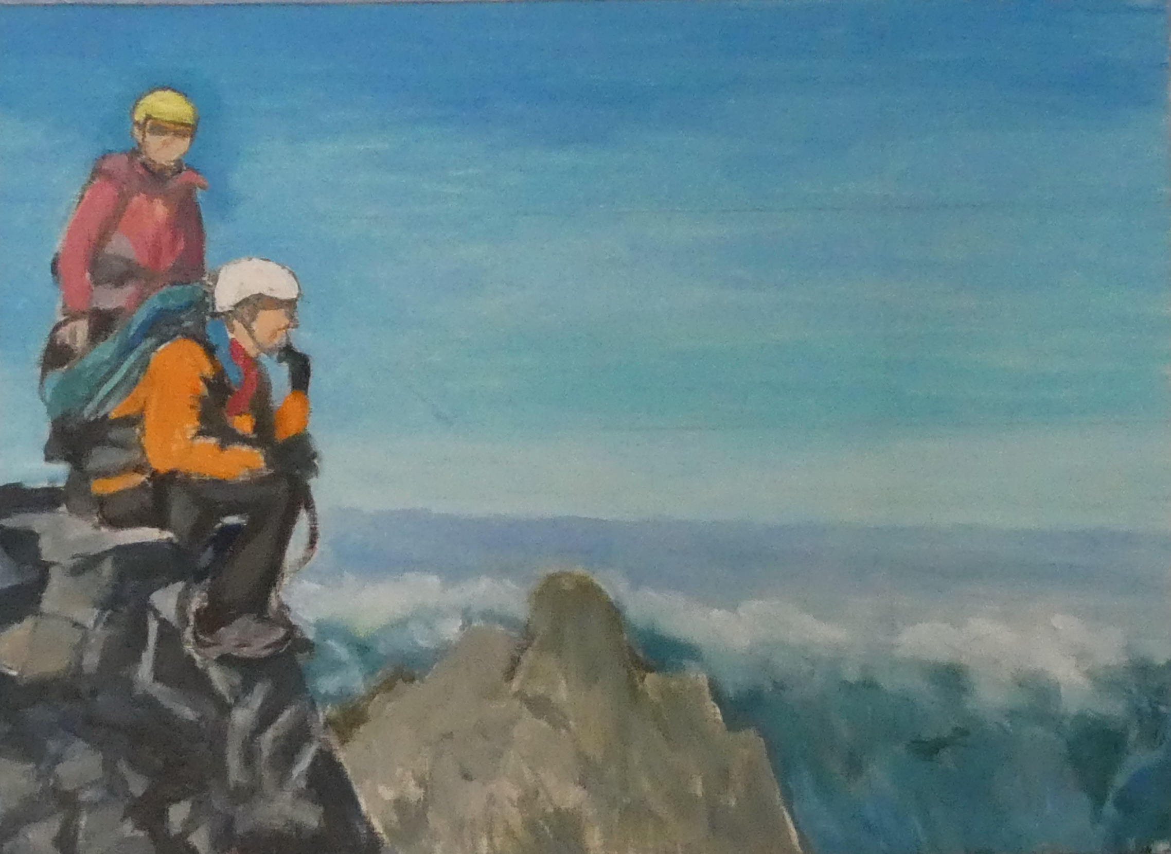 オーナーが山仲間と、奥穂-ジャンダルムを往還したときの一コマ。美和の、未完の遺作だが、そのラフネスが味を出している作品だ。