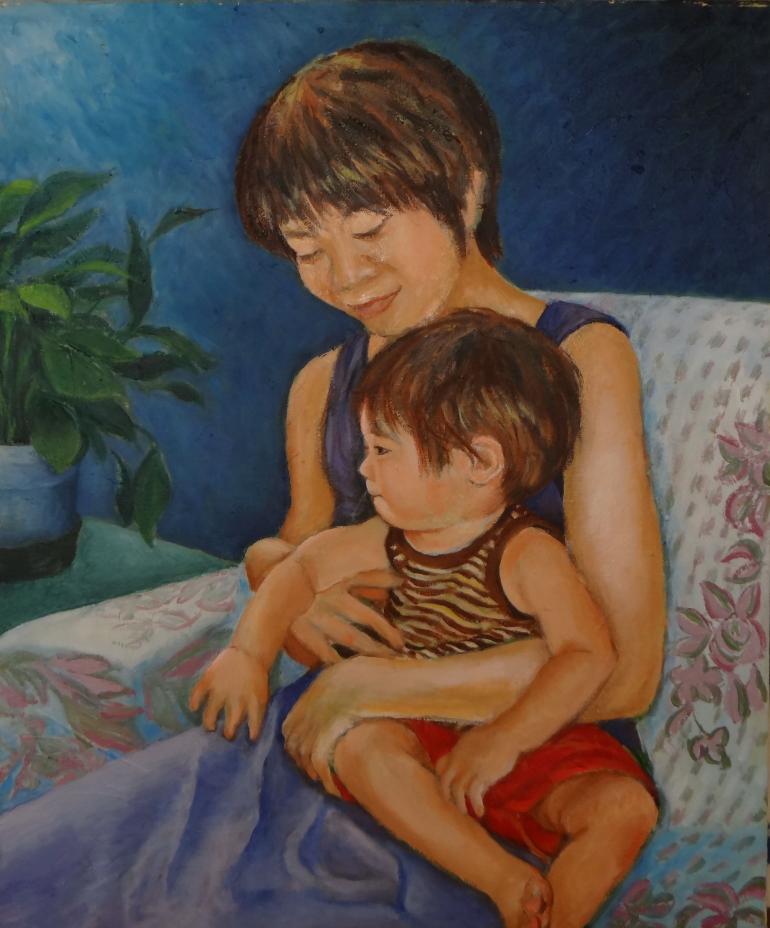 それは美和の、子供をいつくしむ、溢れるばかりの温かい感情そのものだ。生意気・反抗的になっていく孫と長女に諍いあれば、この絵を振返ってほしい。<2010年> -