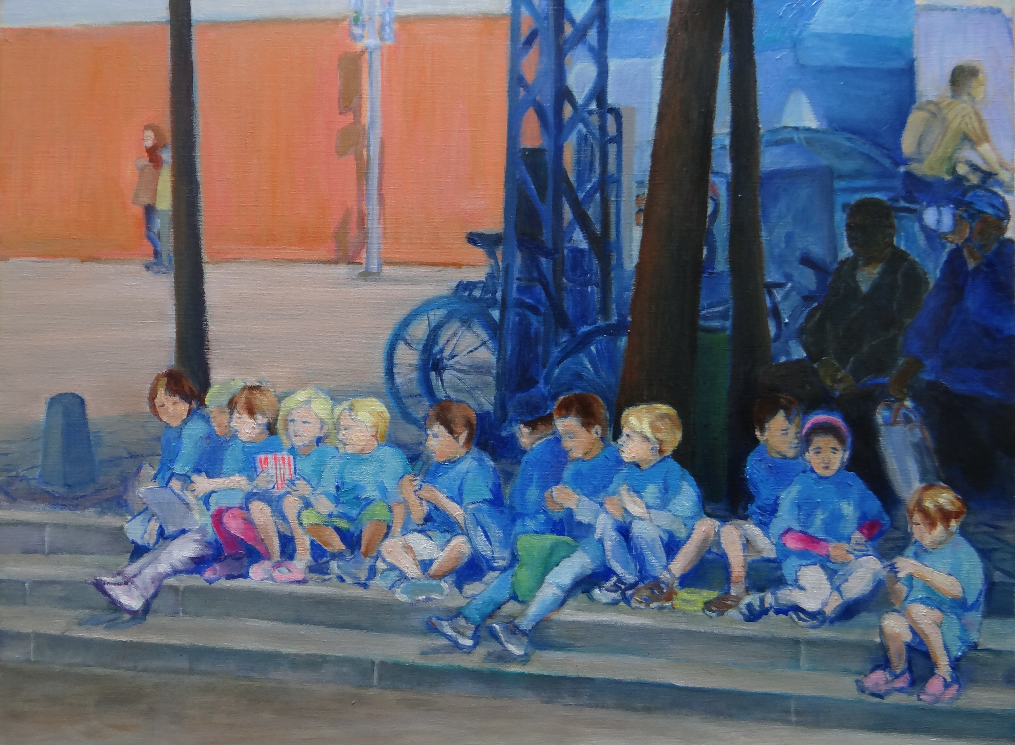 世界中どこの国でも子供たちは心癒してくれる。孫への優しい眼差しと同じ視線だ。美和は人物群像を苦にしないで描けた。<2013年> -